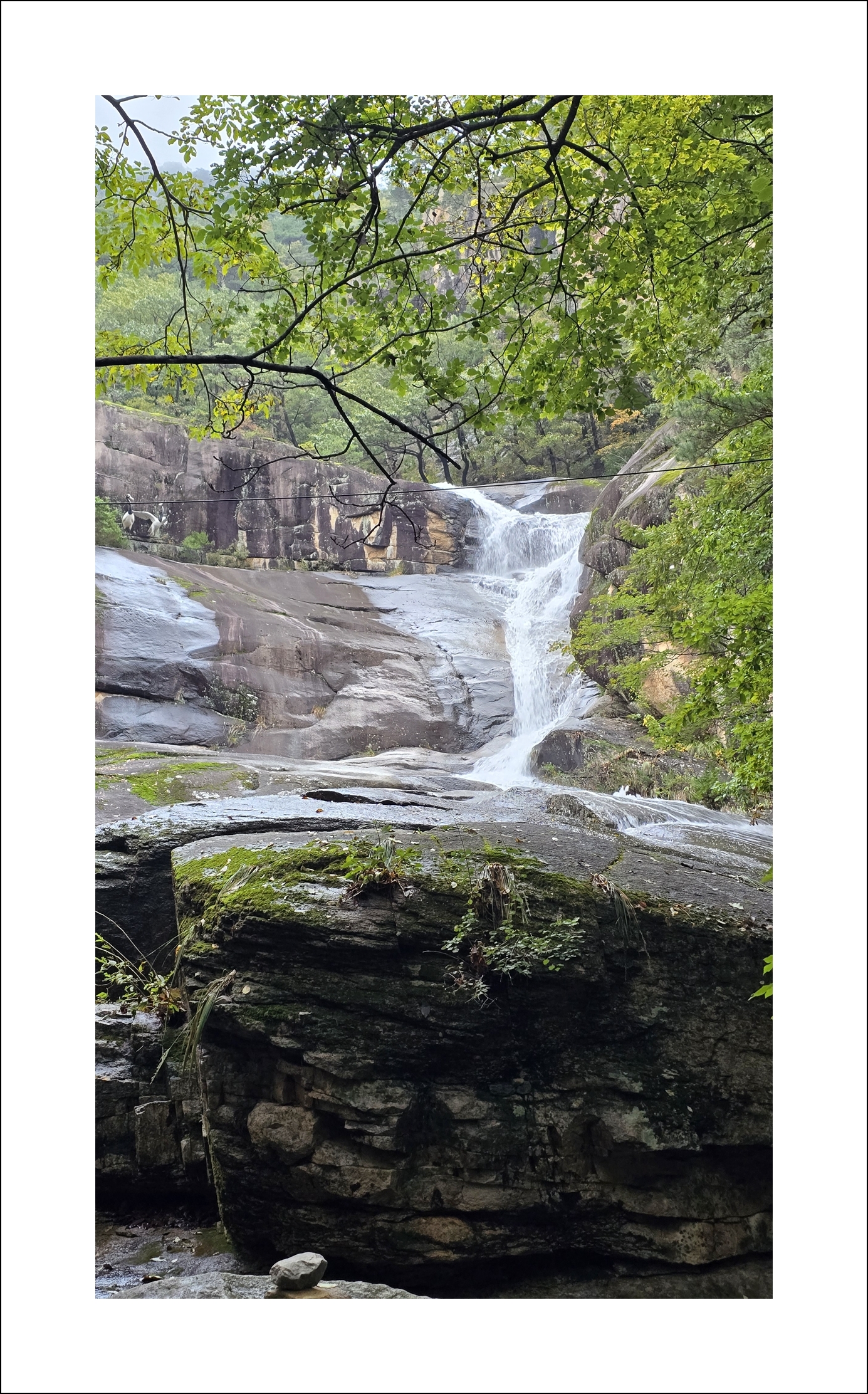 산성12폭포 상단에 도착했는데 전날 비로 인해 물이 불어나서 뜀뛰기를 해야 건널 수 있어서 살짝 정체구간이었다.