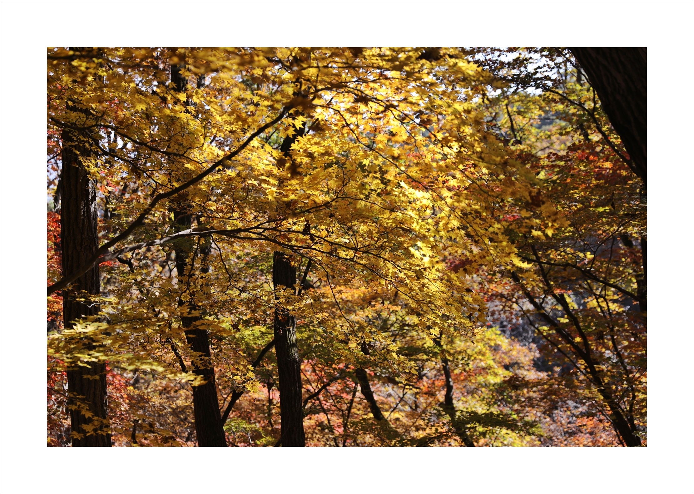 붉은 단풍은 그 화려함으로 눈을 즐겁게 해주고, 노랑 단풍은 고급스럽게 느껴진다.