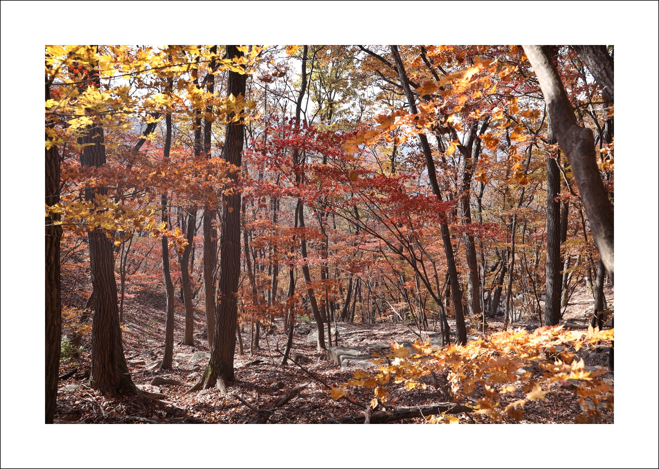 하산하는데 아침에 본 풍경들이지만 햇살이 아침보다 더 좋아서 다시 단풍을 담아본다.